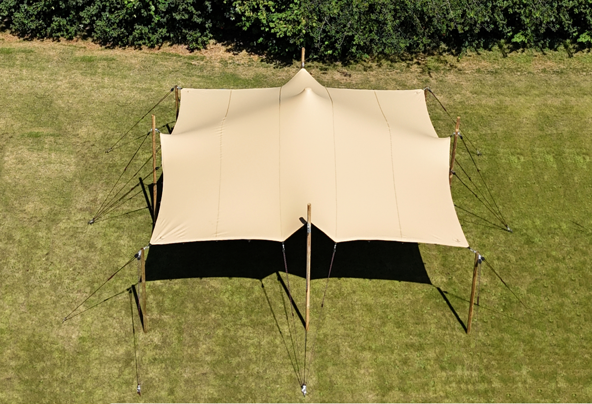 Mit seinen relativ kompakten Maßen von 5,0 x 7,0 m bietet dieses Stretchzelt Platz für rund 35 Personen.