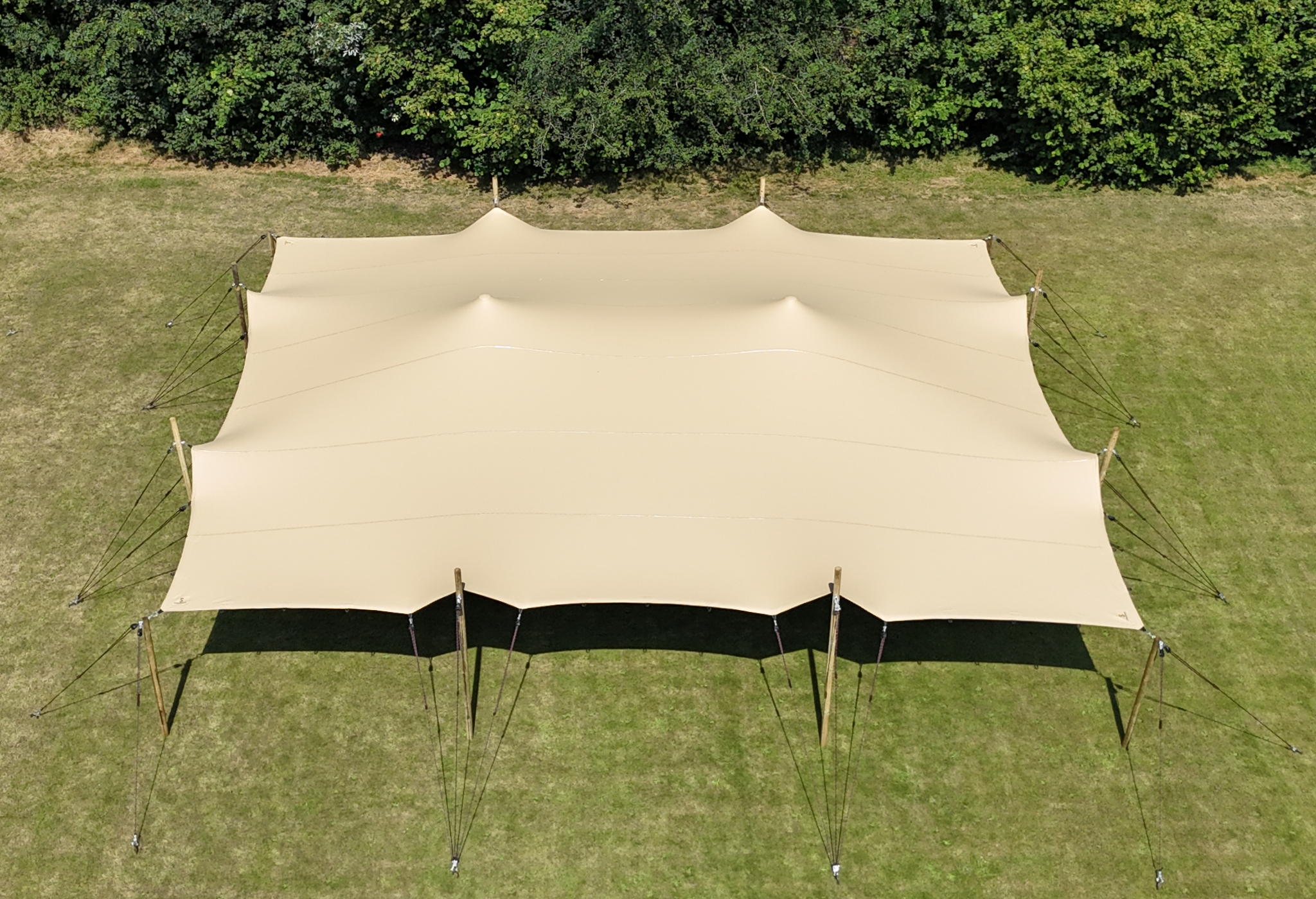 Mit diesem 12,0 x 10,0 Meter großen Stretchzelt können Sie rund 60 Personen unterbringen.